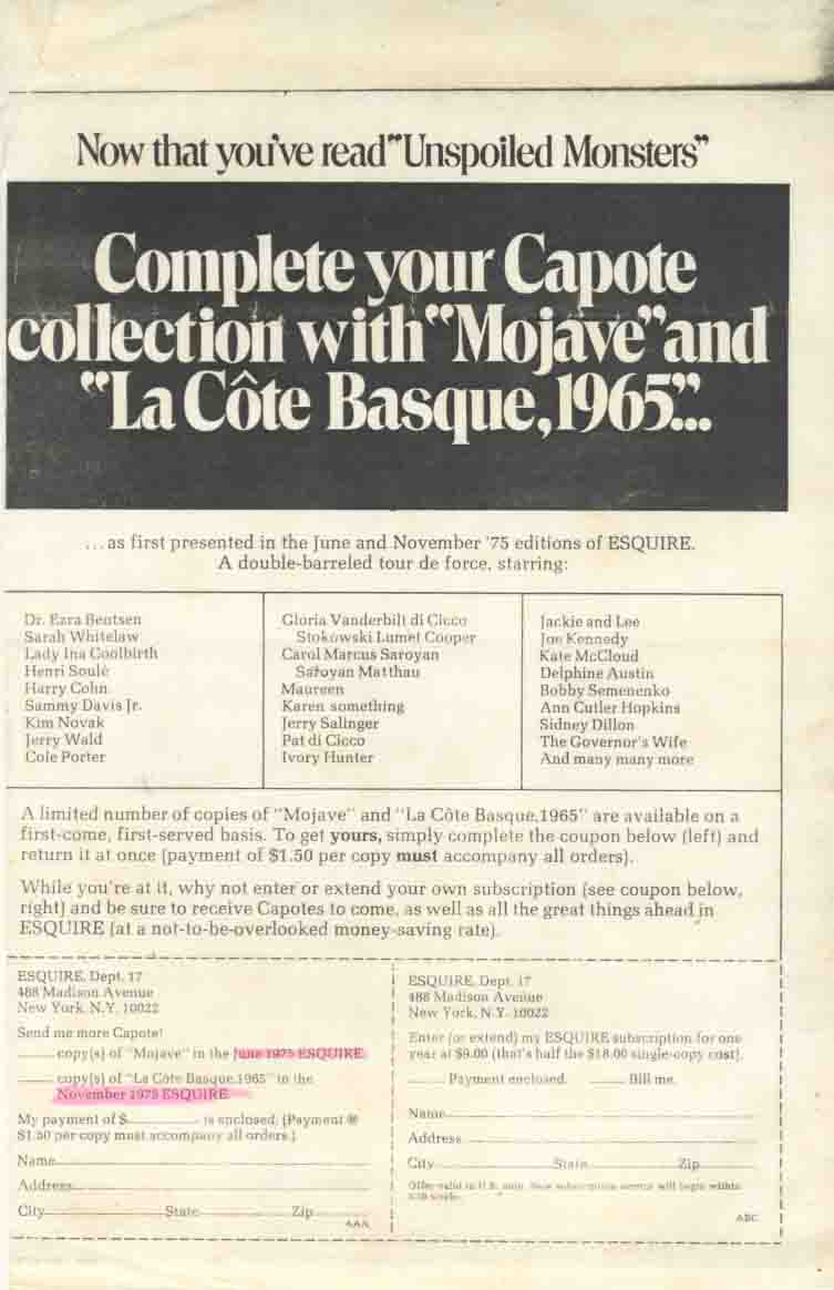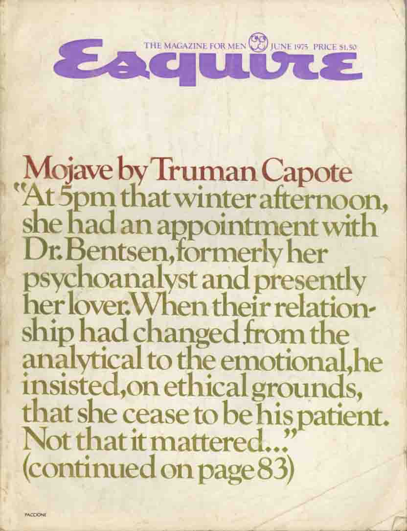 1983年6月「ESQUIRE」に表紙より文章掲載されたCAPOTEの「Majave」ですがノンフィクション作品集「Music for Cameleons」1890年刊に収録されました(「カメレオンのための音楽」早川書房・野坂昭如訳あります)。....