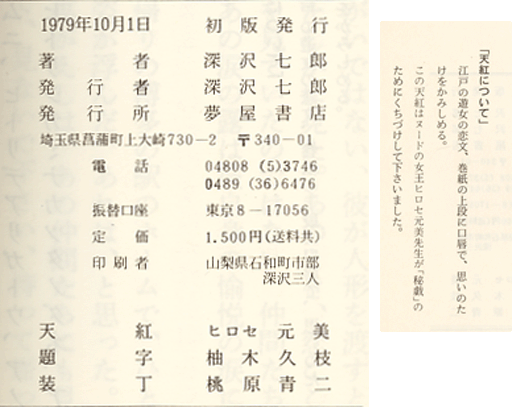 深沢七郎「秘戯」1979年10月1日発行