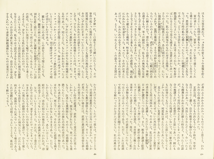 新集・世界の文学(2)「デフォ」中央公論社(昭和46年)では紙片2枚が挟んでありました。1枚はご案内で、『前回の配本で42ページと382ページの入れ替わった誤綴じがあり、別紙の2つのページをまるごと、貼付けて下さいと』のことです。2枚目がその、裁断して張り付けるべき、2ページ分ですが、裏面はもちろん白紙です。回収対象になりそうですが、リコールはありませんでした。