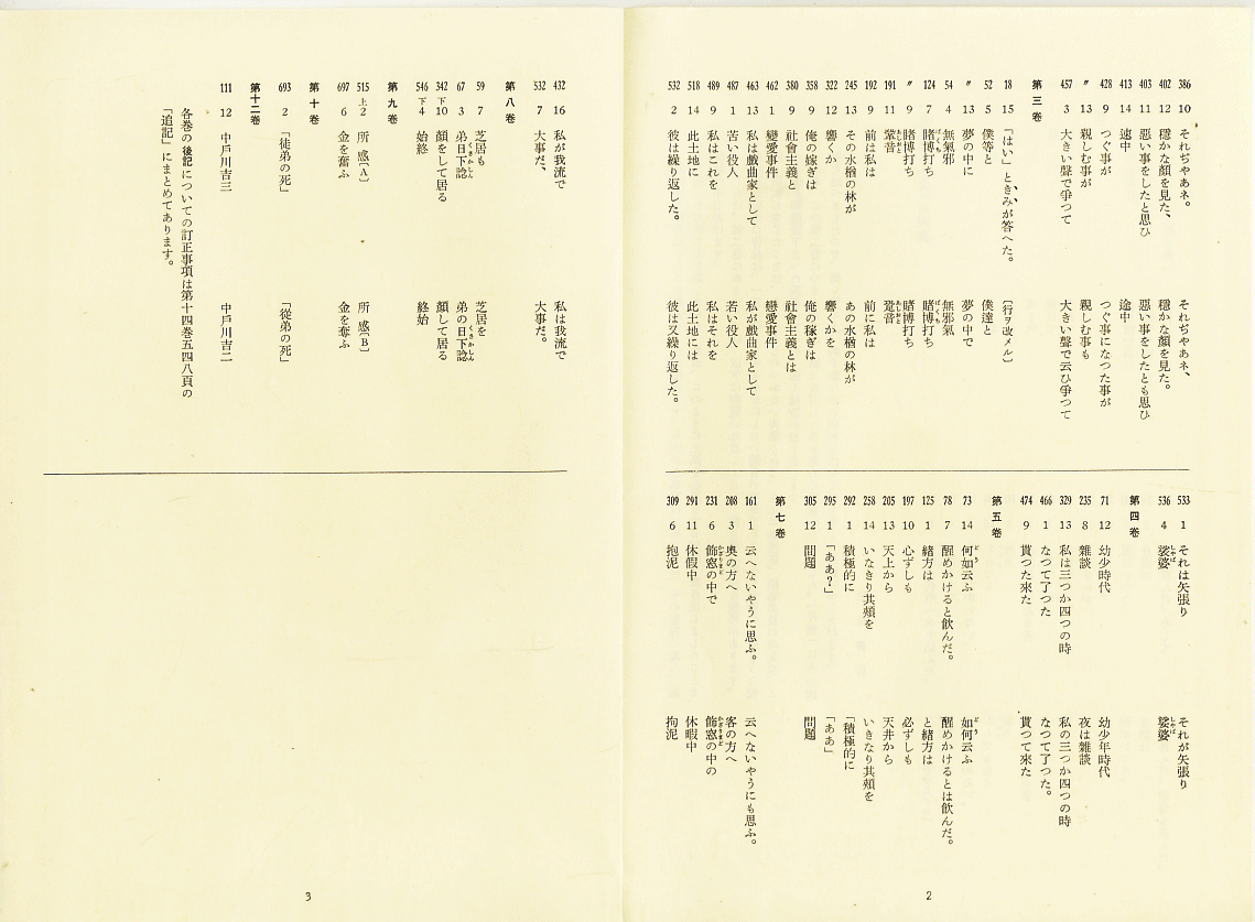 リコールと訂正案内、どちらにするか、出版社の事情は色々です。『志賀直哉全集』岩波書店(昭和49年刊)の別巻には二っ折の紙片がありました、既配本、全14巻にわたる「志賀直哉全集」『正誤表』です。特に第2巻においては「脱落・誤記」多しとして、第2巻交換の申込み葉書も一緒にあります。リコールは第2巻のみです。改めて『正誤表』をみると第3巻でも結構ミスが多いのですが、3巻の交換はありません。リコール決行の条件は、うーん、微妙。